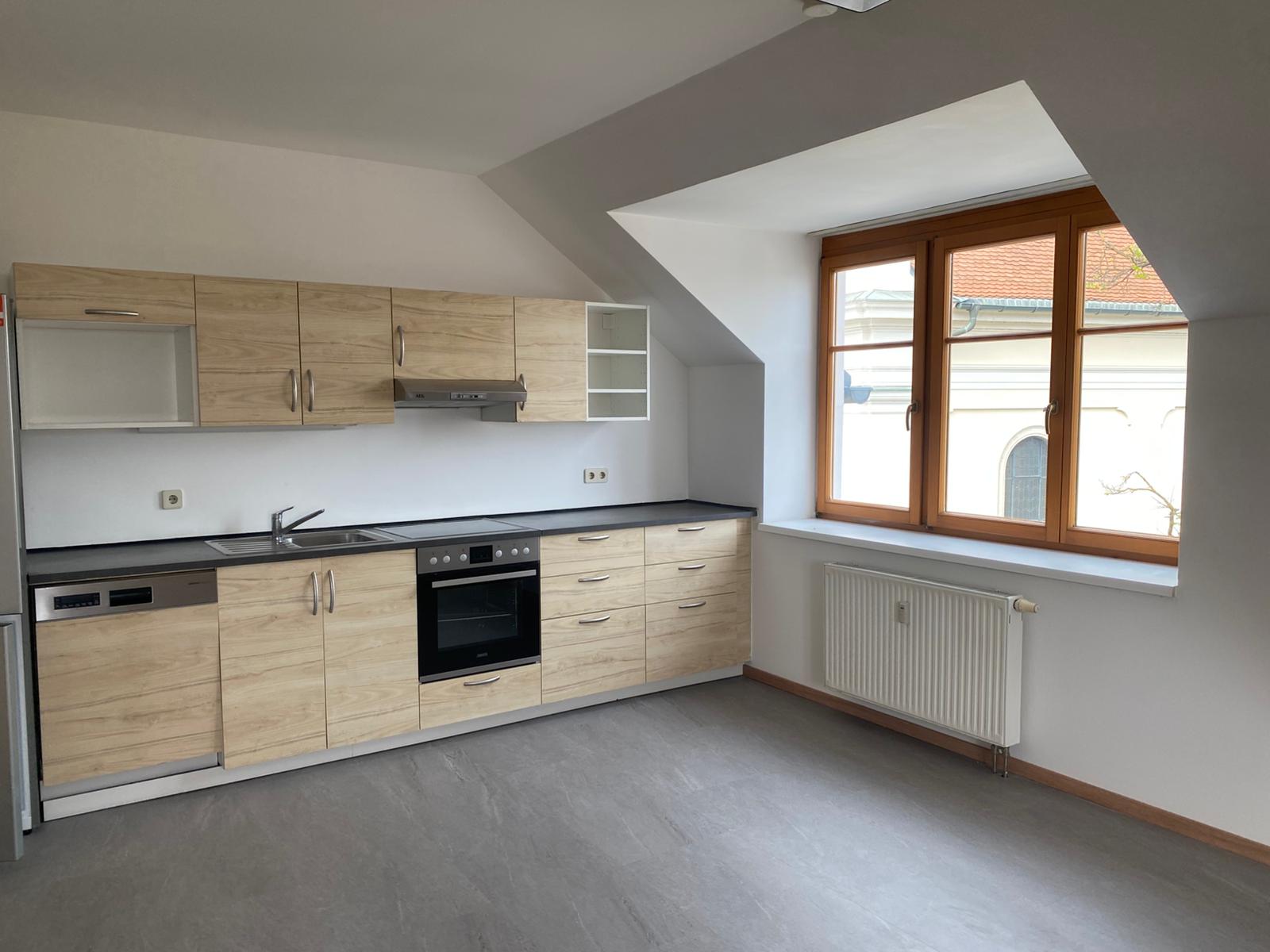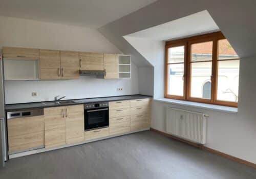 Eine Küche ist in der Wohnung integriert. Badezimmer ist wie Bestand ausgestattet.